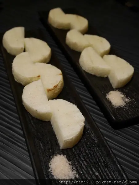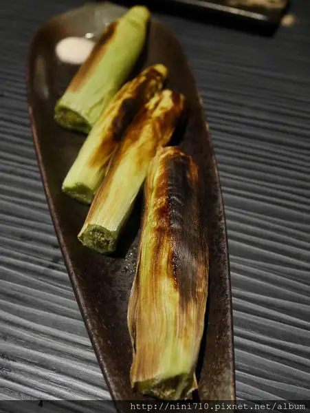 鹽烤山藥,個人很推薦這個鹽烤山藥,烤起來的山藥清脆鮮甜,還會牽絲,只沾一點點鹽巴來吃滋味超美妙,光這個山藥我們就點了三盤,因為真的太好吃了