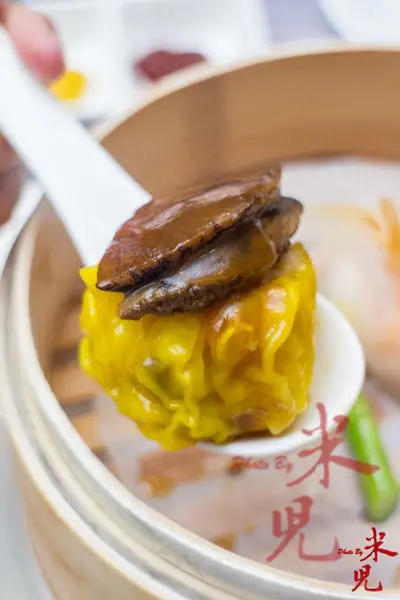 BB鮑燒賣,每顆燒賣都可以吃到一整顆的BB鮑,燒賣本身也是用料扎實,蝦泥和豬肉的比例極佳,彈性十足!