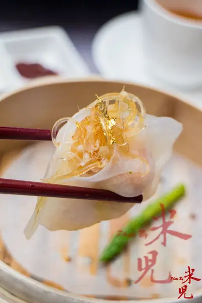這裡的招牌點心,金箔魚翅鮮蝦餃,光看這麼美的樣子就讓人心折了,更別說送進嘴裡那股子美味,尤其是那餃皮,彈Q柔軟卻不易破,把鮮美的整隻蝦餡包裹起來,真是一個高貴而誘人的點心啊!