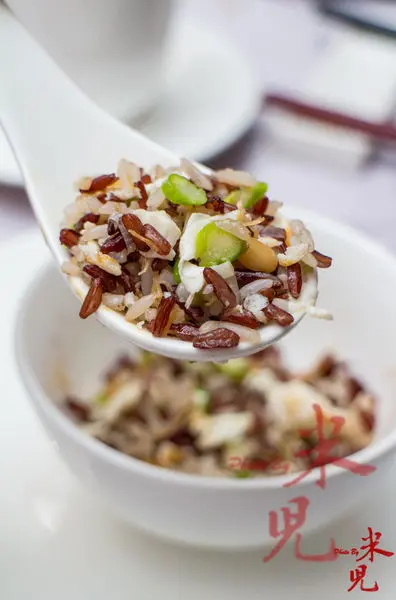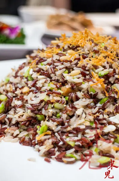 寶石般的紅米炒飯上桌,果然晶瑩搶眼!