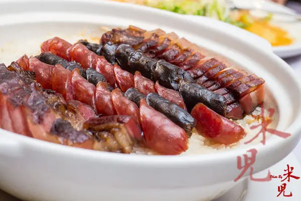 臘味煲仔飯,有分大小鍋的,這鍋是大的,上桌時就讓大家驚呼的啦~~看看那個豐盛的臘味整齊排在鍋上,鍋粑的香氣在我們拍照時直竄腦門,淋上特製甜醬油之後的香氣更是要命!結果有人明明吃很飽,還是忍不住吃了三大碗啊!