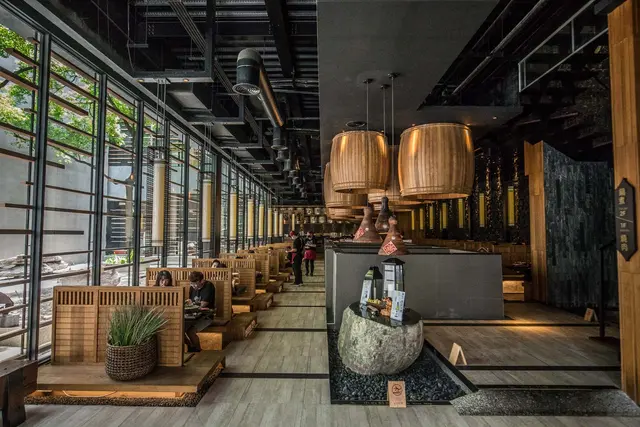 推開大門,昭日堂燒肉的用餐環境有夠氣派,大面積的落地玻璃不僅引進自然光線,坐在靠窗的位置還可以看到悠閒日式禪風設計的中庭,在光影樹蔭襯托下,給人一股寧靜舒服的用餐氛圍,餐廳上方還有好幾個超大木桶,很有日本高級料亭的感覺
