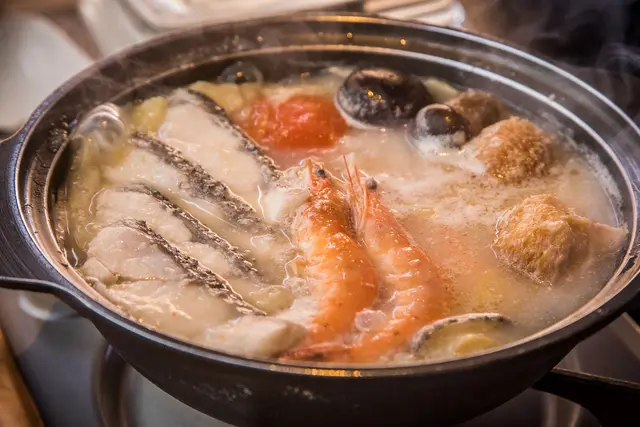 湯品:九州御膳海鮮鍋,其他台中燒肉店了不起就是提供暢飲雞湯,昭日堂燒肉直接搞一個火鍋給你,還不是那種普通的小火鍋,是九州豚骨海鮮火鍋,除了海鮮魚片、鮮蝦外,竟然還放了猴頭菇跟鮑魚,超猛啦