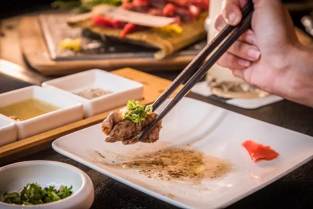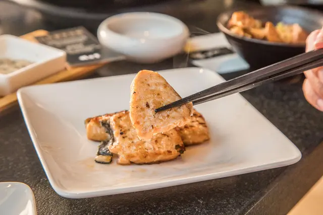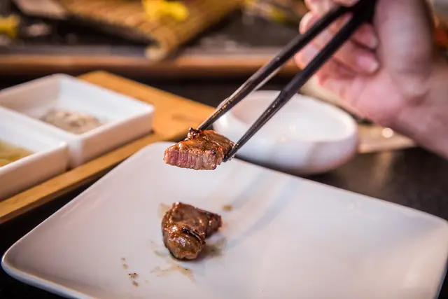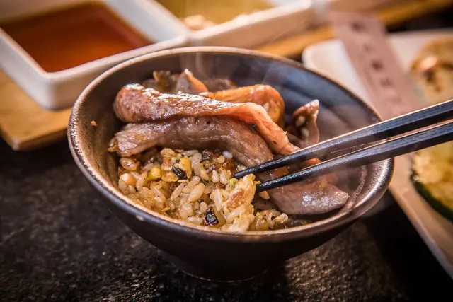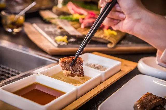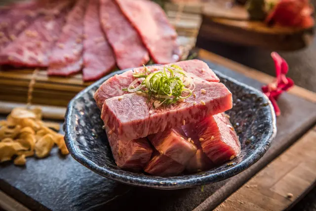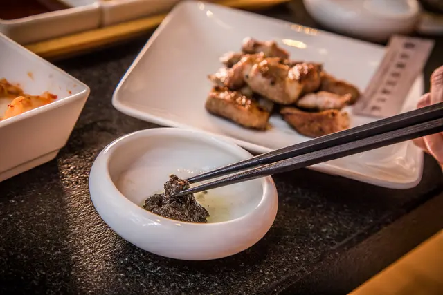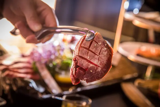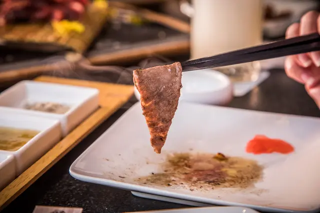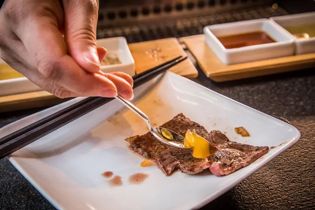 吃進嘴裡立馬可以嘗到如同奶油般濃郁的牛肉脂肪香氣,厚切肉汁感十足,越是咀嚼嘴中滿滿都是甘醇的油脂香氣,吃的時候也可以加點泡菜或鹽蔥,口感更豐富