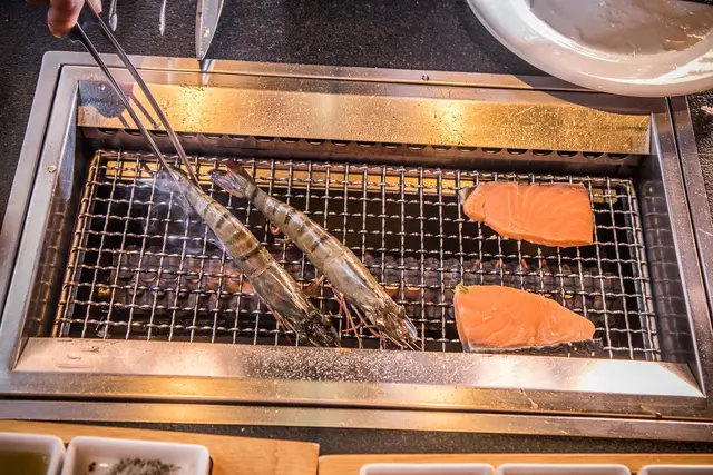 海鮮燒烤類有挪威嫩鮭魚(可換干貝)及深海大蝦,這裡還有一個很貼心的服務就是會幫你剝蝦!是不是超貼心的!