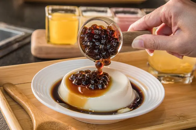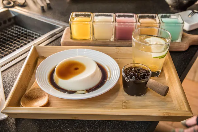 甜點我們是選黑糖珍珠棉豆花跟法布甜檸檬塔,黑糖珍珠棉豆花必點,這是昭日堂與台中小農「日作豆腐工房」合作的有機手工豆花,這個真的很好吃,黑糖珍珠很Q而且棉豆花豆香氣十足,口感也很軟嫩