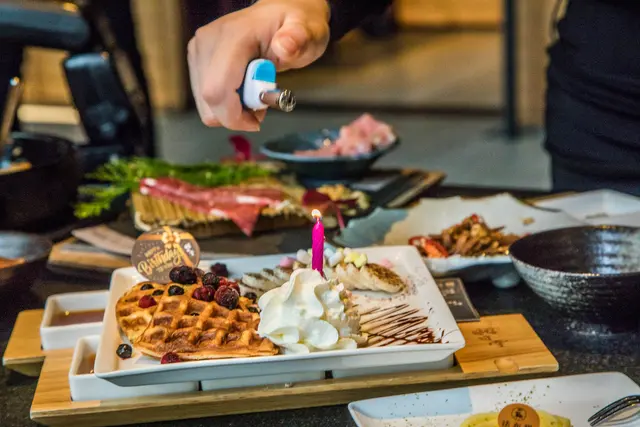 奶蓋啤酒+甜心鬆餅』一份,插上蠟燭慶生超有FU啦