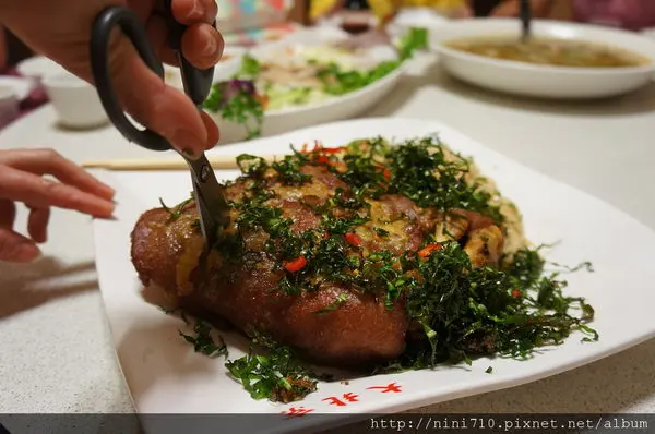 氣勢驚人的豬腳麵線,據說是楊老爺的最愛呢!一上桌服務生就拿了剪刀馬上剪下去,嗚!我都還來不及拍