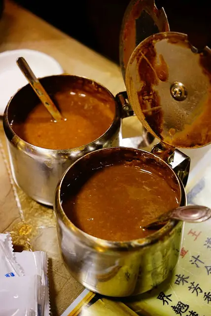 沾食材的醬料有辣的跟不辣的,都帶點甜甜的豆瓣醬滋味,香辣的十分過癮唷!