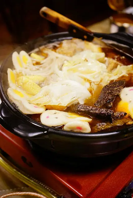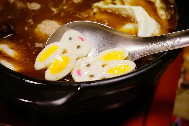 為了讓死板板黃土土的薑母鴨鍋看起來溫馨可愛一些,我還買了幾片小白兔魚板點綴拍照,可不要來跟店家講說要小白兔魚板嘿!