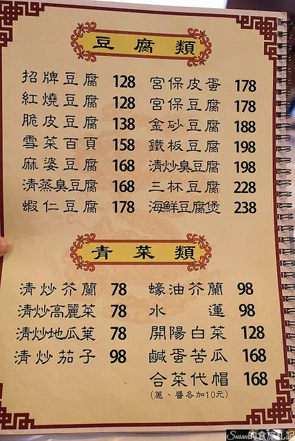 雞肉類、牛肉類、豬肉類、海鮮類、豆腐類、青菜類、湯類、火鍋類