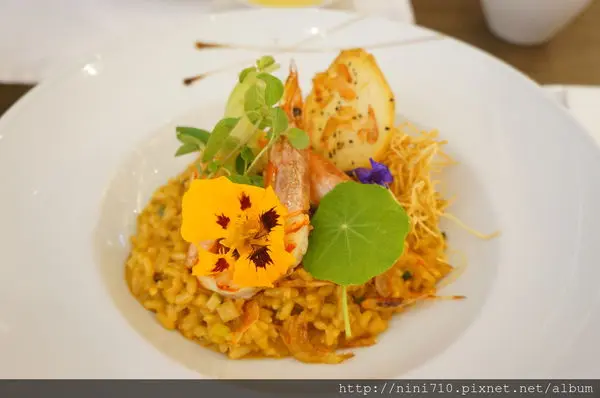 上回吃的松露牛肉燉飯與這次吃的鮮蝦燉飯(名子都是不正確的,我忘了正確菜名)都好吃得讓人意猶未盡啊!燉飯上的花都是可以食用的,吃起來試沒啥味道啦!不過燉飯本身包你吃的口口都很齒頰留香,口口都會讓你很滿足