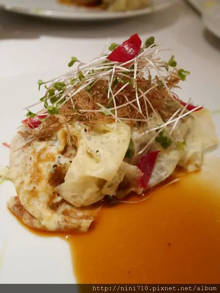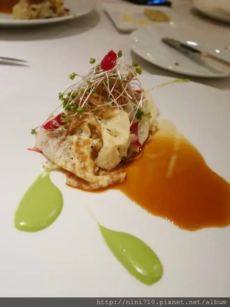 醬汁是爽口清新的檸檬奶油,搭配上台灣特產珍珠粉圓,粉圓是用高湯細細熬煮的,我第一次吃粉圓不是稀哩呼嚕的喝他,而是一顆顆仔細品嚐女主廚蕙質蘭心獨特的創意
