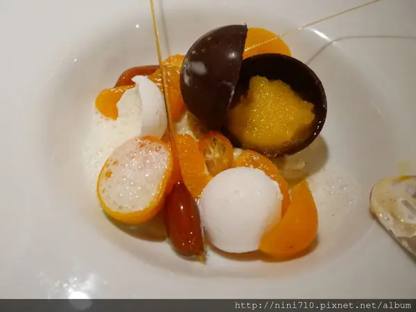 巧克力球裡還有著清新著舒暢的茂谷柑冰沙,像蛋殼的那個也是糖殼,就連裹著糖衣的杏仁我也覺得怎麼可以那麼好吃