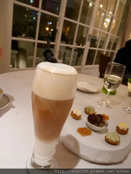 最後上了我點的冰拿鐵與小蛋糕盤,每次吃到這裡我就差不多要棄械投降了,真的很飽,看那快溢出來的拿鐵奶泡,打的多細緻