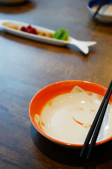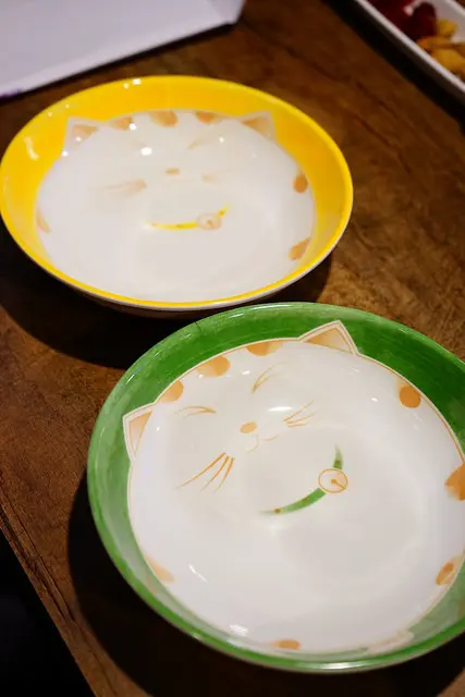 看看他們家的貓貓小魚餐具多麼可愛小清新,原汁原味的從對岸送了過來,尤其琺瑯杯上的口號有趣的很心,用詞用語陸味十足,有些話說得讓人心有戚戚焉