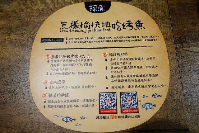 畢竟烤魚是台灣目前比較少吃的到的料理,店家還會貼心地在桌子上貼上如何吃烤魚的小撇步