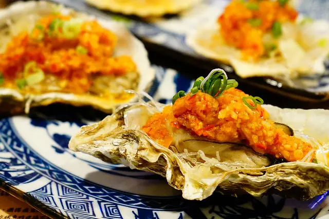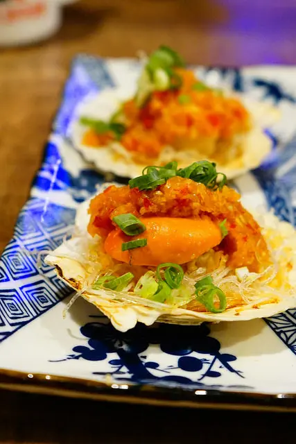 探魚除了烤魚以外也有探烤串燒類,這道蒜蓉烤大生蠔也是店內主打,一份兩顆150元