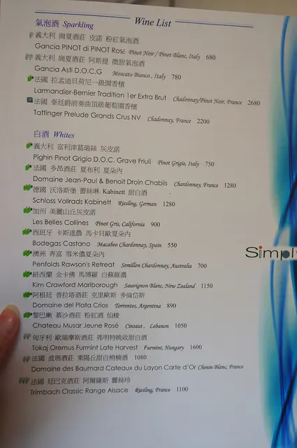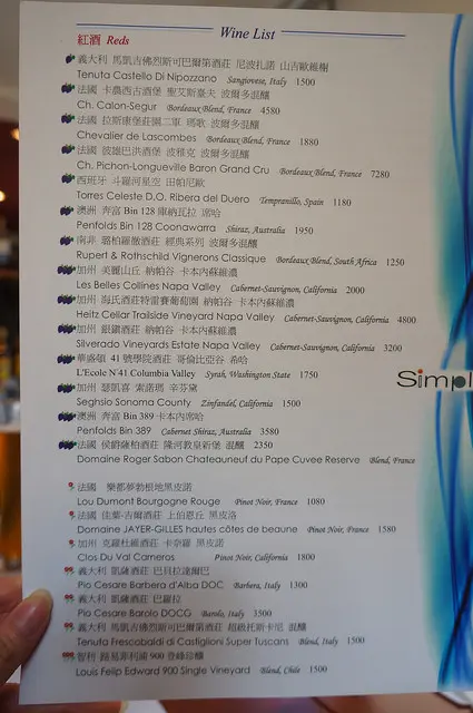han很自豪的跟我們說因為 simply付近圍繞著四五家酒商,大家都是熟識的好朋友,所以simply提供與酒商一樣的優惠價格讓我們可以輕鬆享受美酒,那款匈牙利歐瑞摩斯的貴腐甜白酒感覺很不錯捏!好想點來搭配甜點唷!應該跟他們家的招牌松露蜂蜜千層蛋糕搭起來會很好吃