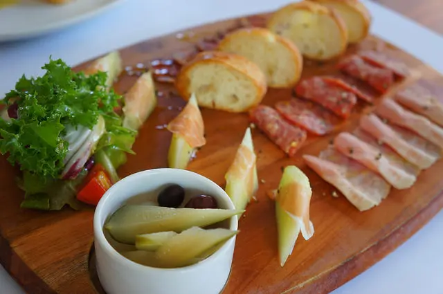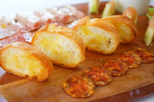 西班牙臘腸散發出匈牙利紅椒粉與油脂的味道,每一種都是下酒的好菜,搭配上麵包棒或者與起司佐紅酒來喝也很棒