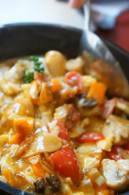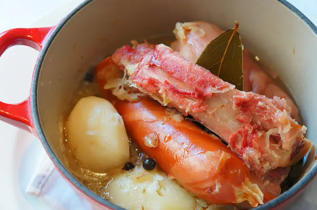 阿爾薩斯酸菜豬腳燉鍋,han說是阿爾薩斯的傳統名菜,突然想到我曾經到阿爾薩斯這個德法交界的地方旅行過,忍不住的問蟹老闆他怎沒帶我去吃,蟹老闆說那天阿爾薩斯的豬腳都賣完了,回頭去翻翻我的遊記,我還真的有吃到豬腳,也是滷豬腳來著,寫遊記就是有這個好處,不然每次玩回來大家問我吃啥玩啥我都通通給他忘記了