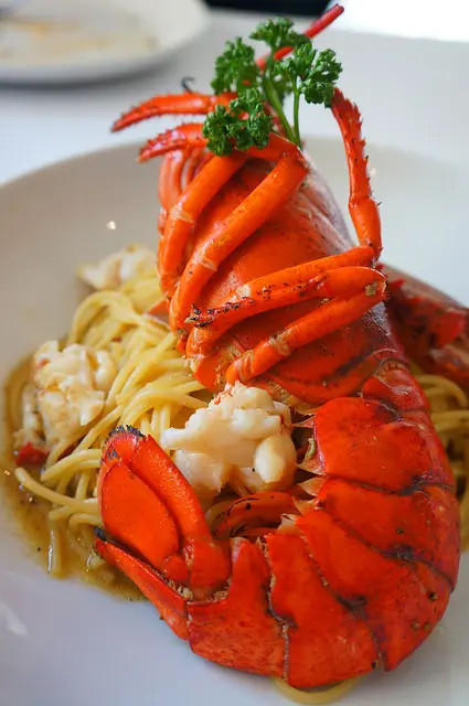 波斯頓龍蝦麵,可以做成白酒蒜香口味、蕃茄海鮮口味和牛肝菌菇奶油口味 ,今天我們品嚐的是白酒蒜香口味,但我內心吶喊著我比較想吃牛肝菌菇奶油口味,沒想到起士也跟我一樣,空運新鮮甜美的活龍蝦,搭配義大利頂級杜蘭麵粉製成的彈牙麵條,滿足了最近一直想吃龍蝦的起士,龍蝦鮮甜的湯汁滿滿的吸附在麵條上,太銷魂了