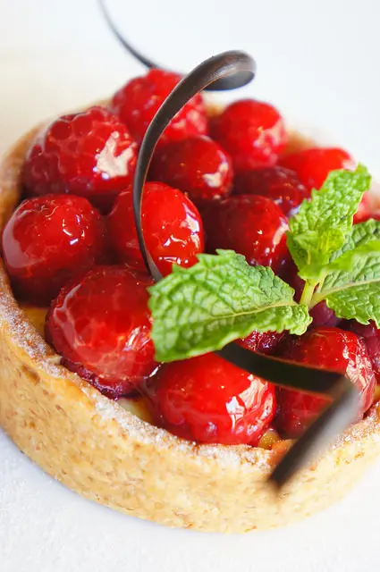 覆盆莓塔,這道甜點好有聖誕花圈的氣氛,尤其他們的卡士達醬也是不膩口的那種,酸中帶甜太爽口了