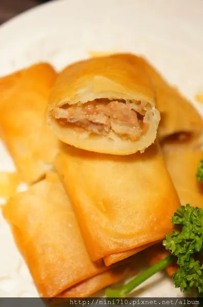 應該是雞絲炸春捲,我也沒吃,小花還嫌我點太多油炸物了,他說吃了好膩.....