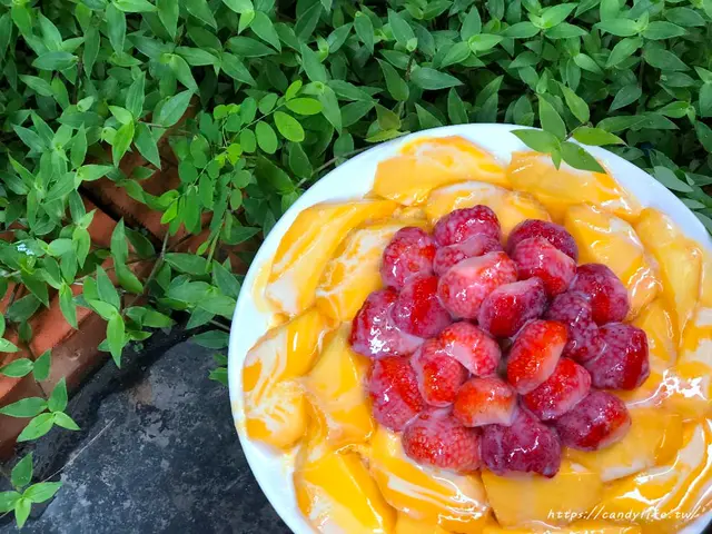 草莓跟芒果都是新鮮現切,草莓還蠻大顆的,很多汁,色澤也很鮮豔,不過可能是因為快到草莓季的尾聲,所以整體吃起來偏酸,搭配著煉乳吃可以減低酸度唷