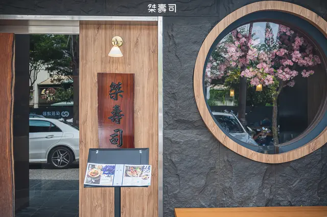 桀壽司總共有兩層樓,一樓店面裝潢的很日式風格,左邊有樹盆右邊有一個圓窗,可以看到裡面的櫻花樹,拍起照來也是很有一番風味,從每個小地方都可以看出店家的用心。