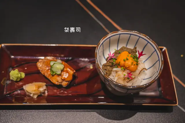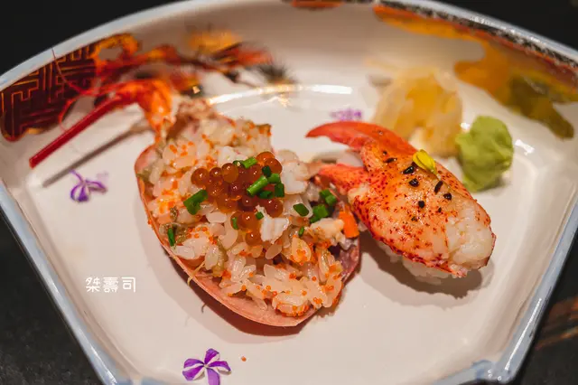 1680套餐/食事,龍蝦三吃—散壽司,使用半隻龍蝦用來料理兩道菜,這龍蝦散壽司調味的剛剛好,上面還有鮭魚卵,口感超有層次~旁邊的龍蝦肉握壽司也好好耶!!那肥美的龍蝦肉,一口吃下,太滿足了~