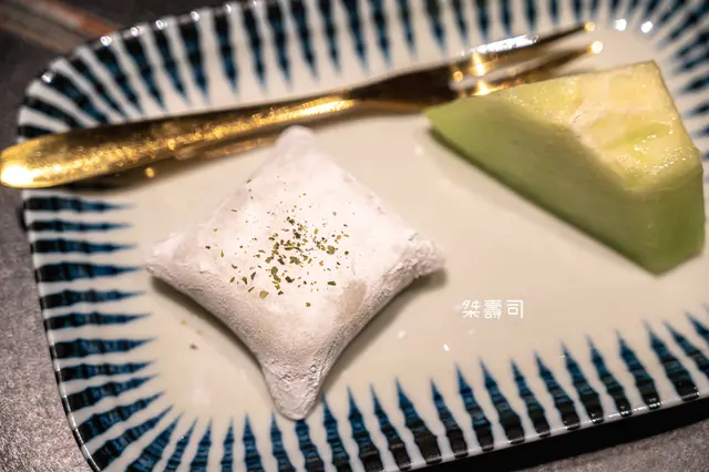 1680、2980套餐/甜點,抹茶慕斯雪莓娘搭配每日水果,這個抹茶慕斯雪莓娘吃起來奶味會比較重一點,因為怕有些人不敢吃抹茶,所以抹茶的味道有特別調整較淡一點,旁邊的哈密瓜超甜超好吃的,吃完甜點也代表整個套餐到這邊畫下完美句點啦!