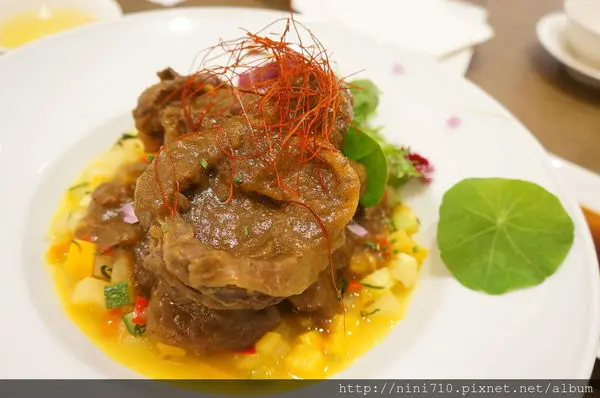 啤酒鳳梨燉牛膝襯夏日燉蔬菜,啤酒及鳳梨天然酵素可以軟化牛肉,讓牛膝吃起來Q嫩無比入口即化,燉煮得入味的蔬菜有著濃濃又帶著香甜的果香,大塊大塊的豪邁牛膝絕對不用擔心吃不飽,王太太要求餐點走精緻路線但是每道菜都要讓客人吃得飽吃的滿足,所以如果像我們這樣兩個女生來的話,其實只要點一個沙拉一個主食,絕對就非常飽足了