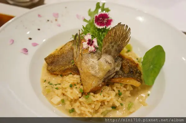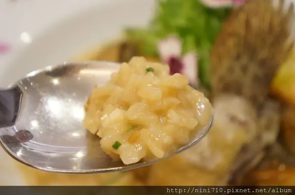 海石斑蛤蜊絲瓜燉飯,雖然我對石斑魚沒興趣,可是好想試試看絲瓜燉飯唷!絲瓜燉飯裡除了絲瓜外還有一個個口感爽脆的筍丁,柔滑的絲瓜搭配上脆脆的筍丁口感整個好豐富,帶點中式風味卻又不唐突的西式燉飯,絕對好吃的讓妳嚇一跳