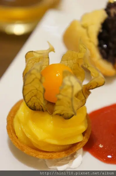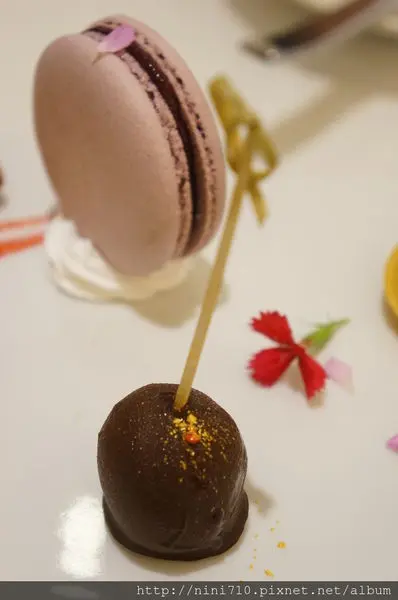洛神花棉花糖巧克力,外層香脆裡面卻入口即化,我喜歡這裡的甜點都作成小小一口,好吃又不會太膩口,而且各各有特色