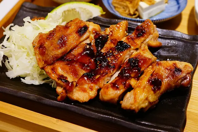 雞腿排烤的香香嫩嫩的,雞肉有彈性絲毫不乾澀,特調的照燒醬汁格外美味,擠一點檸檬汁配上七味粉清爽無比,如果把皮煎的脆脆的我就更愛了