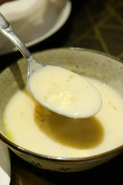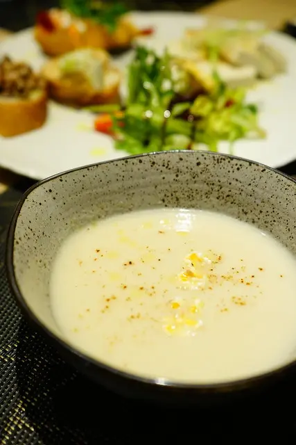 因為我們一共七位但只點六份餐(沒辦法,大家都嚷嚷著要減肥說不想吃太撐),店內美麗的小姐姐(講話輕聲細語非常溫柔)多請我們一份湯品,人真的好好唷!!歐巴桑們最喜歡被招待了