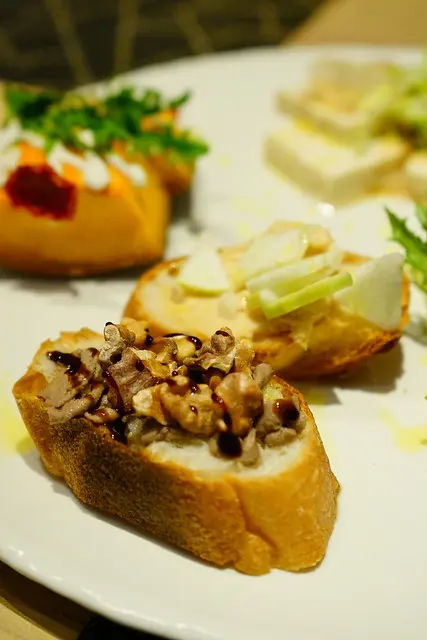 這兩塊麵包與抹醬我愛死了,小姐姐有很詳細的介紹,但大家都在聊天,沒聽得很清楚,有一個很像肝醬的抹醬配上核桃與油醋,另一個好像甜甜的水果香氣的醬搭配芭樂,兩款都是不常見的搭配,別緻又美味