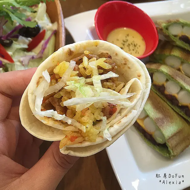 ▲也可以包入一旁的捲餅,搭配生菜和酸奶油