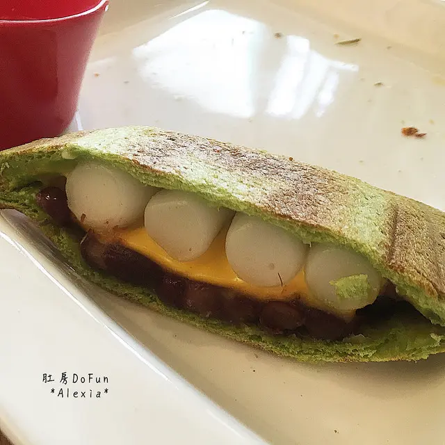 ▲這還是我第一次吃到抹茶口味的熱壓吐司,抹茶最常見的組合就是紅豆啦