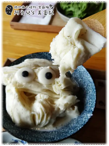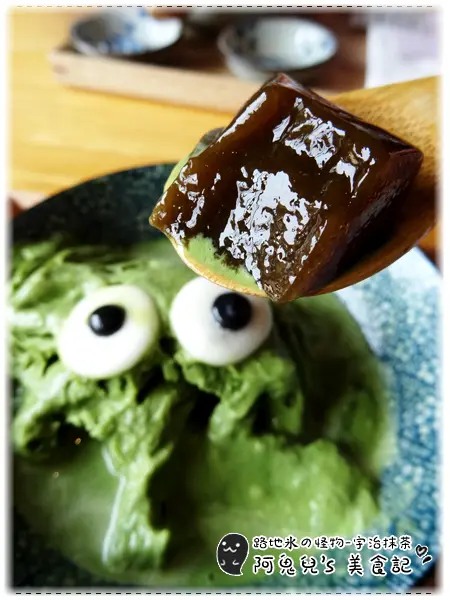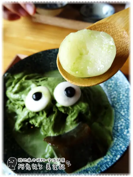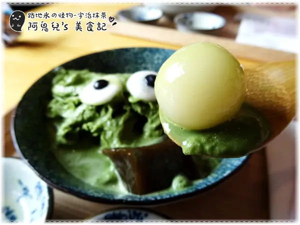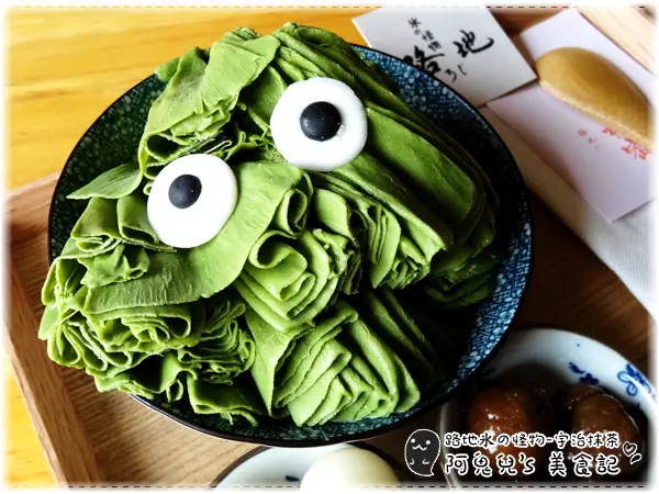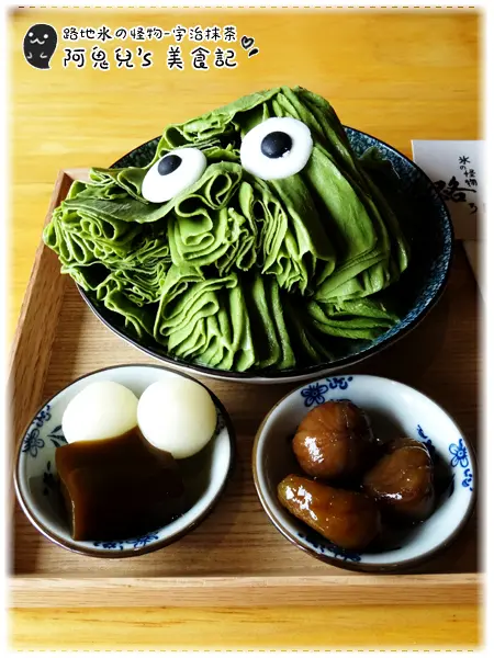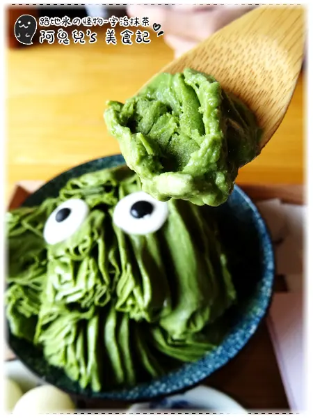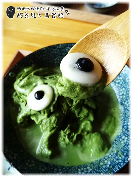 抹茶雪花冰的層次也很美,加了眼睛彷彿讓這碗雪花冰更加生動,也很有趣味呢