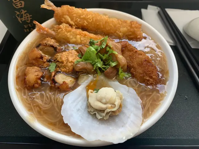 台中西屯富海麵線 只開早午的麵線店 Calvin768等級12024-08-2114 瀏覽 關注 TWD$239 = 套餐A(海底總動員+大腸)($160+$20)+ (黄金脆薯+ 富海紅茶)($59)台中西屯區的富海麵線,只開早午餐的麵店,選了豐饒的海底總動員作早餐還加上大腸及脆薯,以罪疚感開始的一天。店內以吧枱為主,大概十來個座位,以QR選餐,再到櫃檯付錢。海底總動員+大腸海底總動員+大腸NT$180兩隻蝦天富羅,再加連殼的扇貝,已經藉回票價,再加炸蠔及魷魚。湯底濃稠,再配上爽口幼短麵。 黃金脆薯,實為薯條加調料,有點over。紅茶一般。以上食評乃用戶個人意見 , 並不代表OpenRice之觀點。讚好分享台中西屯富海麵線 只開早午的麵線店 富海 https://s.openrice.com/cHRTmW2uz6100檢舉 張貼 評分4味道4環境3服務4衛生4抵食推介美食海底總動員+大腸NT$180用餐日期2024-07-11用餐途徑內用人均消費NT$239 (早餐)