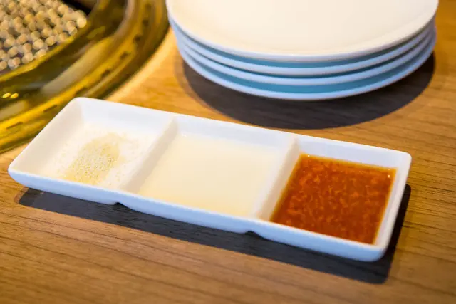 ▲ 桌面上的佐醬,包含昆布鹽、檸檬汁及燒肉沾醬