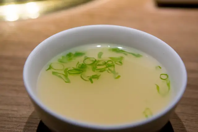 撒入一些蔥花,再啜飲這香醇暖胃的雞湯,確實是很棒的開場。雖然不到相當濃郁,但是喝來清爽而不會令人感到油膩,夠滿足了