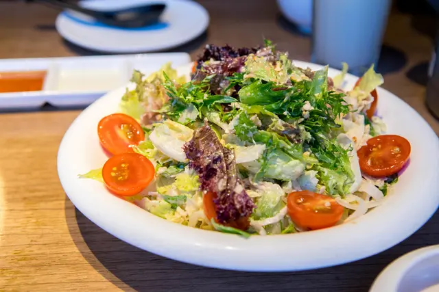 套餐沙拉可以選擇胡麻或凱薩醬,我們選了日式胡麻。帶有些許甜味的胡麻醬,以及淡淡芝麻香氣,搭配新鮮的生菜沙拉相當美味。