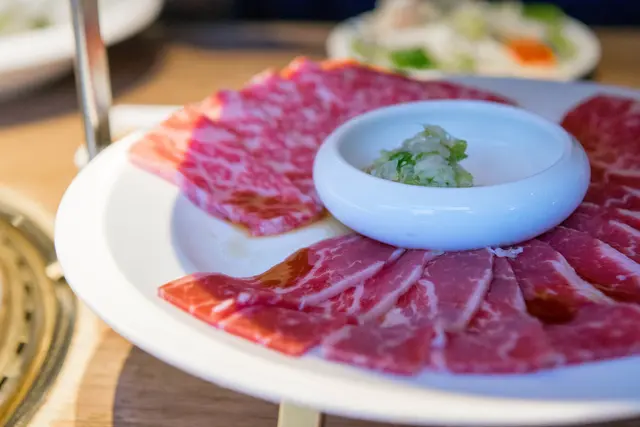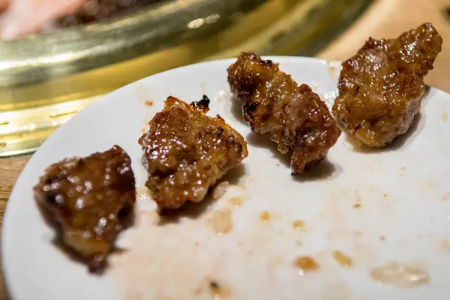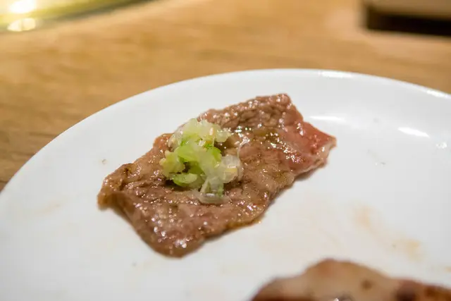 我個人比較喜歡單吃厚的牛小排,吃起來更有肉的口感和爽度!肉片上原本就有些許醬料,單吃便已非常美味,沾些鹽自然是更加提味。