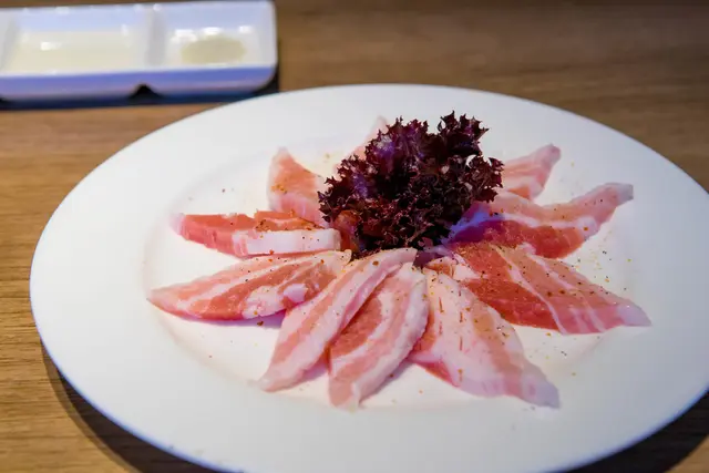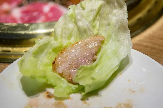 薄片拿來包生菜則是不錯的搭配吃法,或是放上店家另外準備的蔥花增添口感及鹹味。