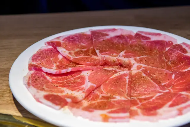 松阪豬一樣可以選擇要厚切或薄切,如果喜歡吃比較帶口感的就要選厚切!單看外表覺得油花稍微多了一點,不過肉的顏色很漂亮