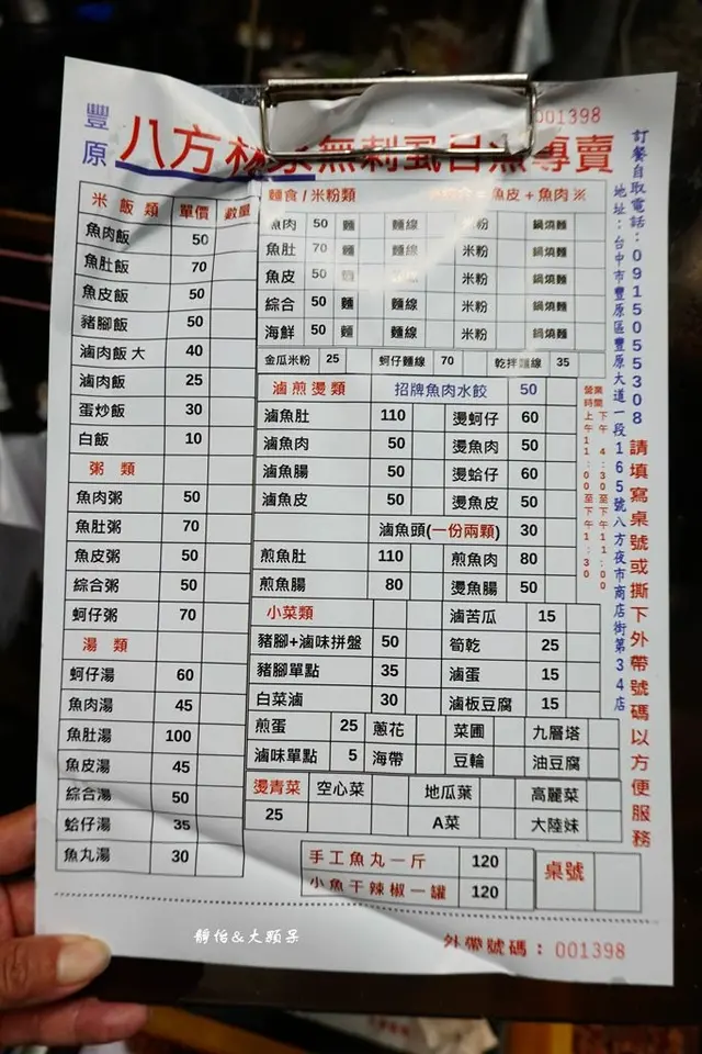 【八方林家虱目魚專賣】菜單及價格