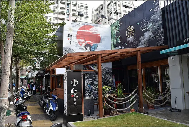 桀壽司沒有突出路面的招牌,又被大樹擋住,算是低調的名店